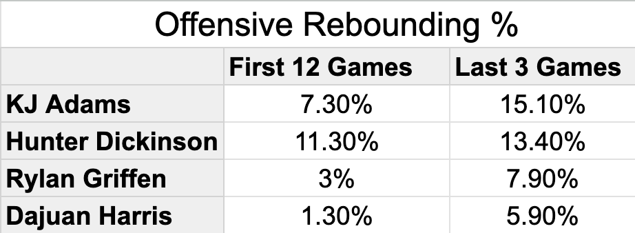 Just look at the recent change in KU’s offensive rebounding.